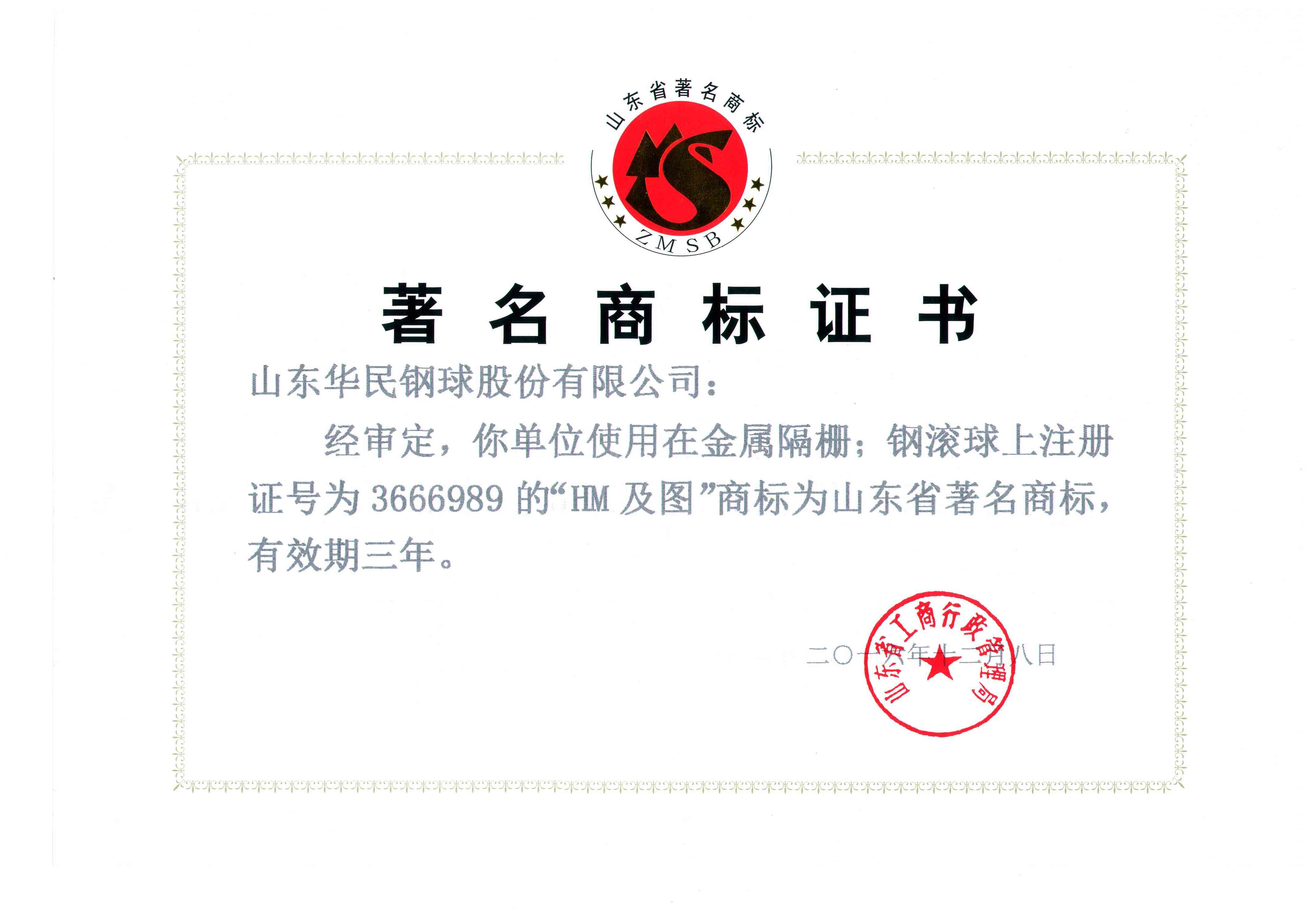 著名商標(biāo)證書